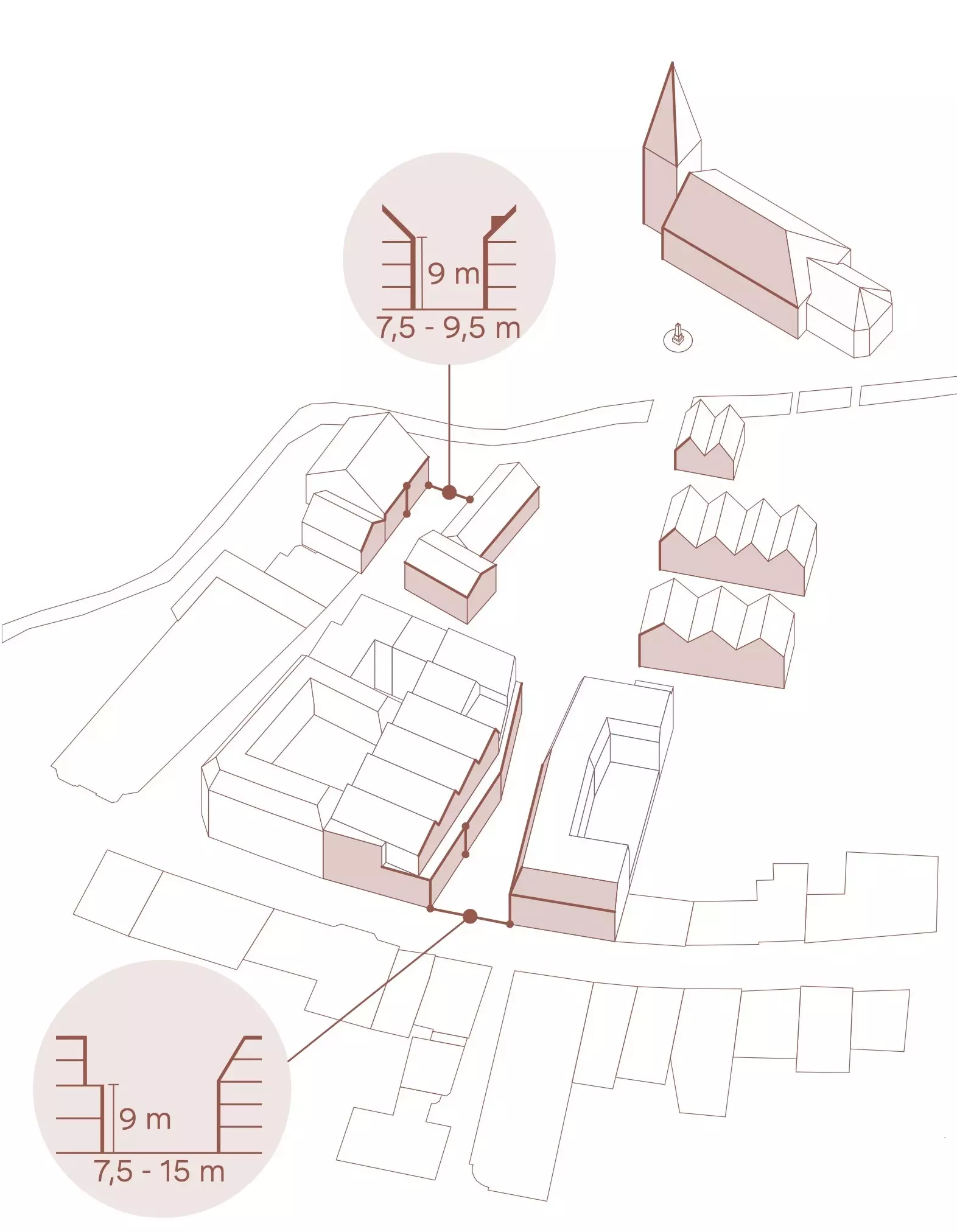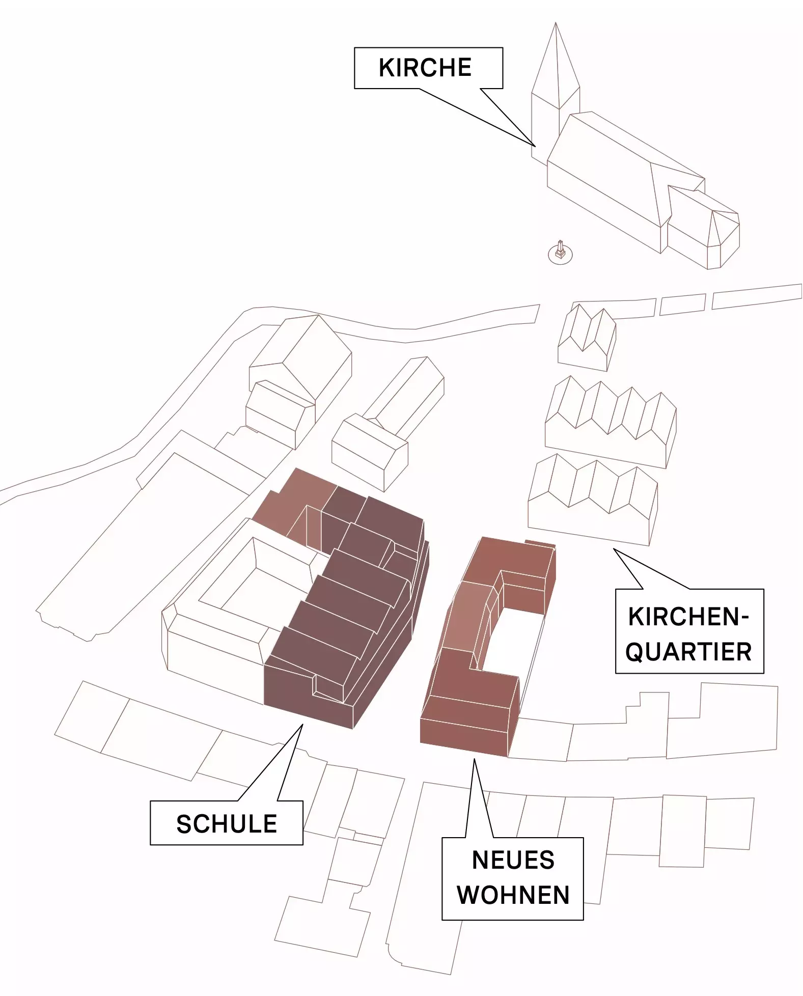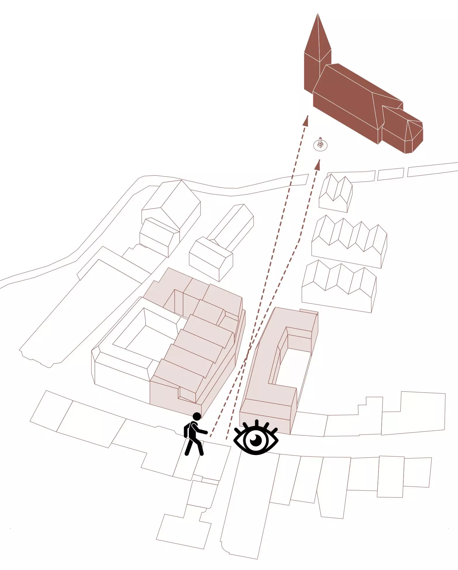 Diese räumliche Geste schafft klare Blickbeziehungen und stärkt die Orientierung im Stadtraum. Bestehende Wegeverbindungen werden neu geordnet, Blickachsen zur Kirche gezielt inszeniert und öffentliche Räume gestalterisch gefasst. Die Stadtkirche wird dadurch wieder als identitätsstiftender Bezugspunkt im Stadtbild erlebbar.