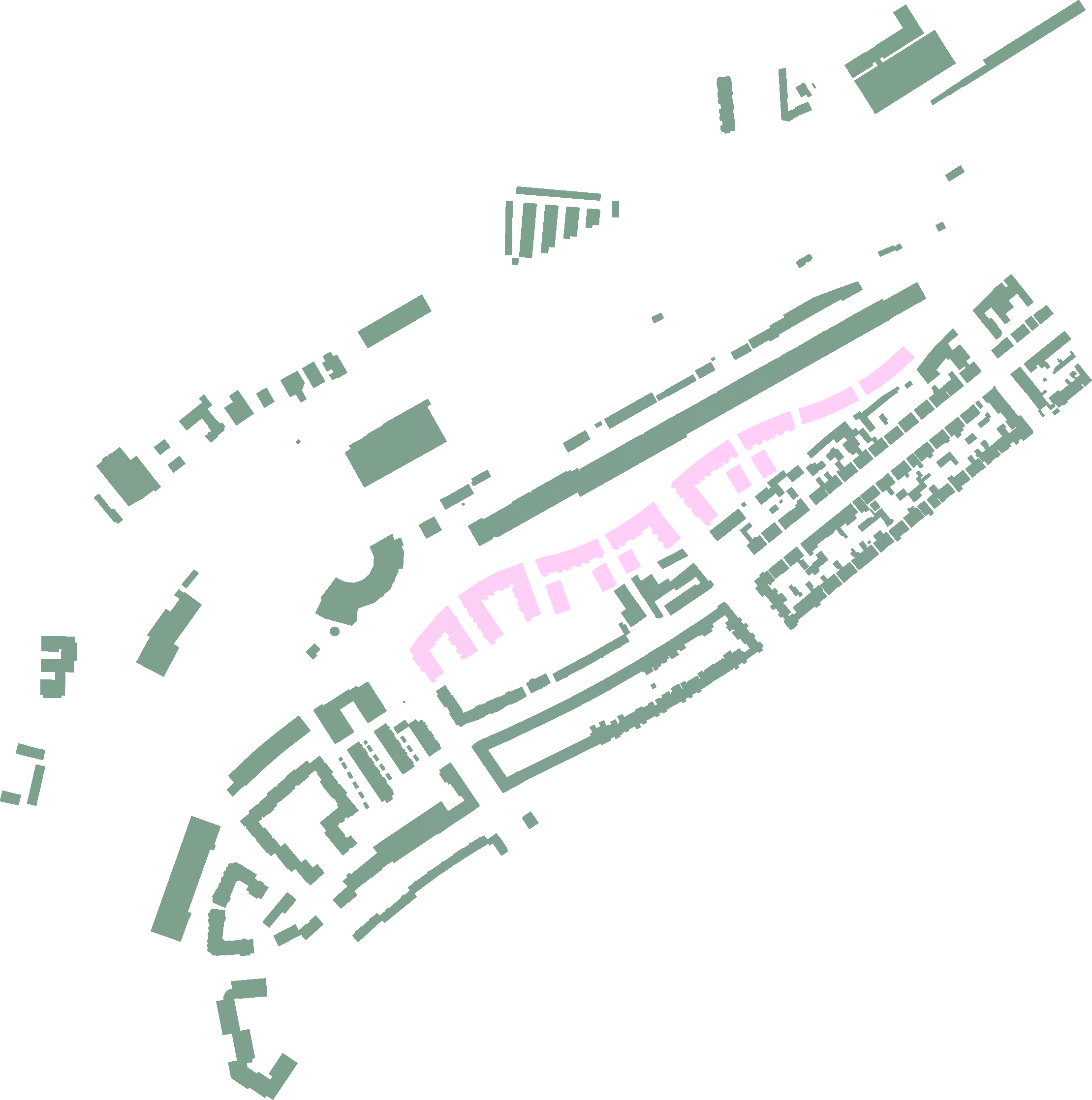 Nutzung im Norden: Die ehemaligen Güterhallen werden rekonstruiert und um neue Aufbauten ergänzt. Hier entstehen eine Kita, Fitnessangebote, Gastronomie, Kulturflächen, Co-Working-Spaces, ein Bäcker und ein Kiosk. Ein fünfgeschossiger Neubau bietet Mikroappartements für Studenten und Auszubildende, und ein Hotel mit 150 Zimmern rundet das Quartier ab.