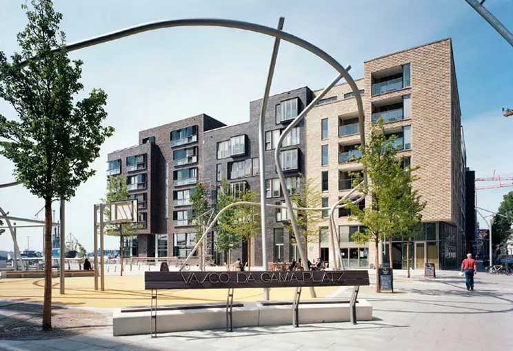 Das Projekt am Vasco da Gama Platz steht für zeitgemäßes Wohnen am Wasser und fügt sich nahtlos in das architektonische Gesamtbild der HafenCity in Hamburg ein.