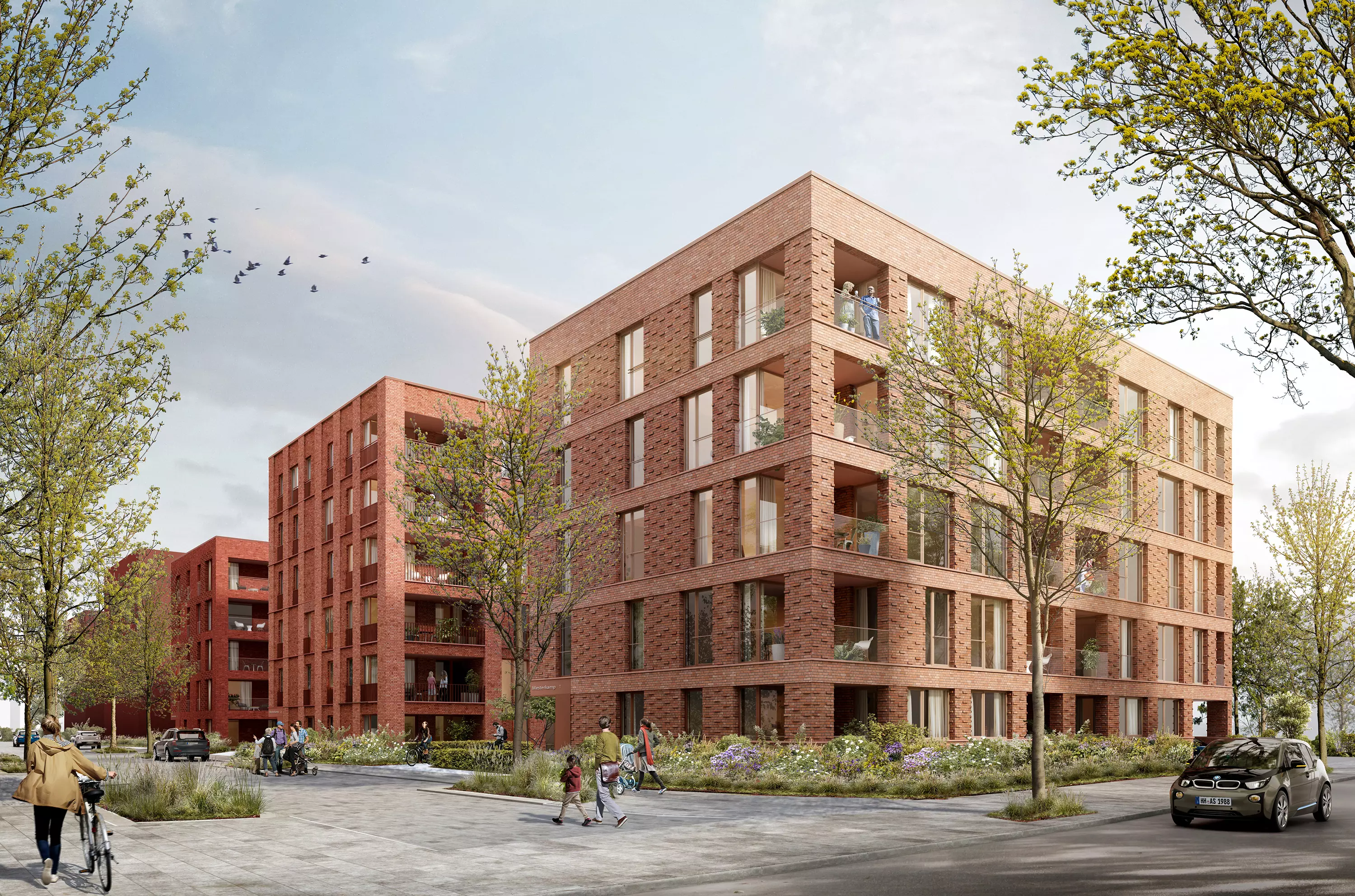 Das Projekt umfasst die Organisation der Häuser in Drei- bis Vierspänner mit großzügigen Treppenhäusern und Wohnungen, die Frontalitäten vermeiden und Weitblicke ermöglichen. Ein Fokus liegt auf barrierefreiem und familiengerechtem Wohnen. Zudem bieten die Häuser zahlreiche Zusatzangebote wie Dachgärten, Clusterwohnungen und Gemeinschaftsräume. Die Fassaden der Häuser zeichnen sich durch klare Kubikformen und eine Einheitlichkeit mit leicht variierenden Farbtönen aus. Verschiedene Treppenhaustypologien sorgen für eine natürliche Belichtung und hohe Aufenthaltsqualität. Jedes Haus hat einen differenzierten Charakter mit besonderen architektonischen Merkmalen.