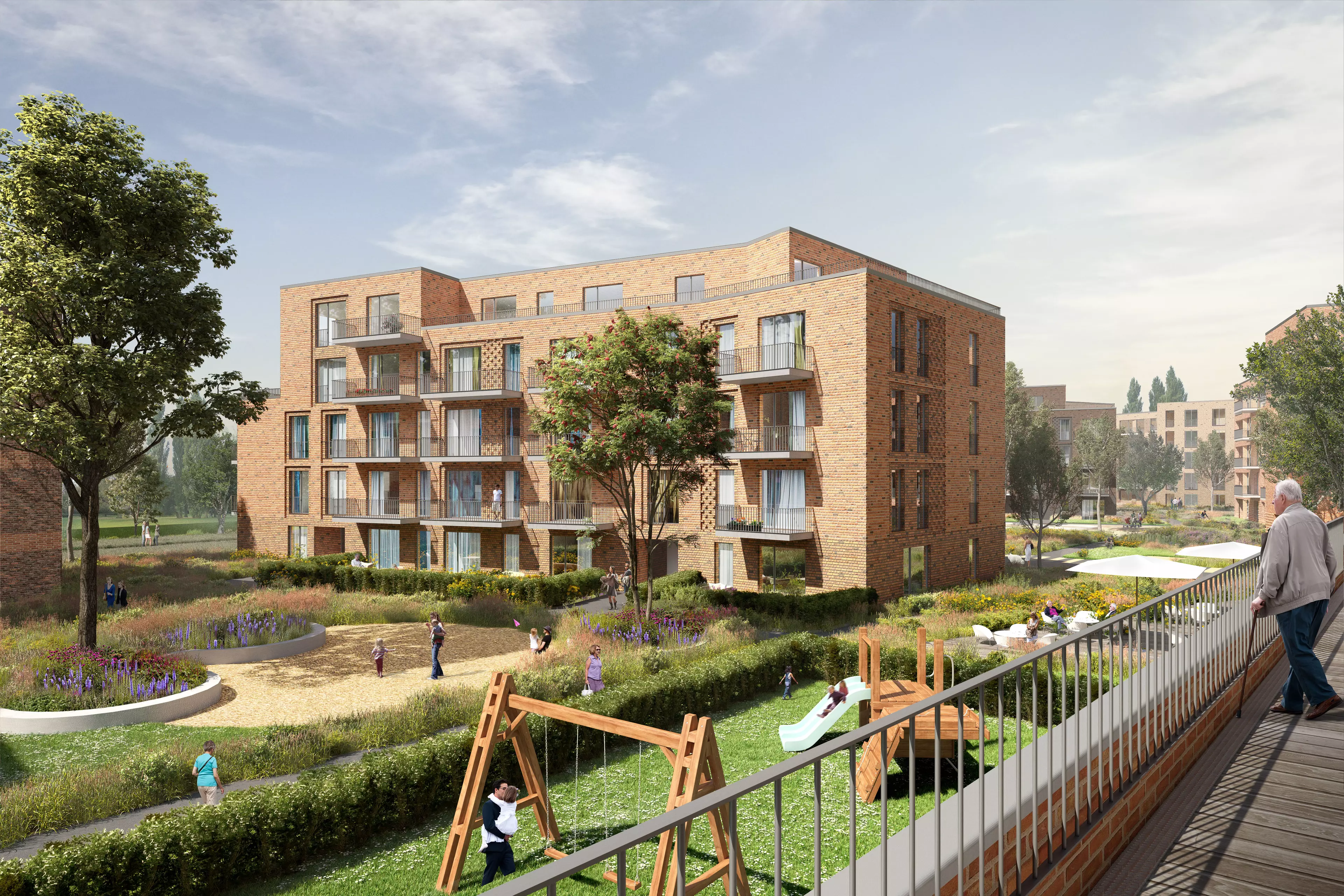 ca. 26.575 m2 BGF mit 280 Wohneinheiten und einer Kita auf ca. 2,1 ha Grundstücksfläche